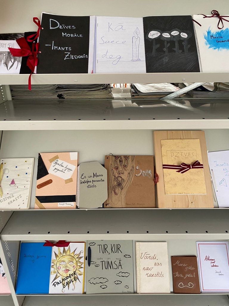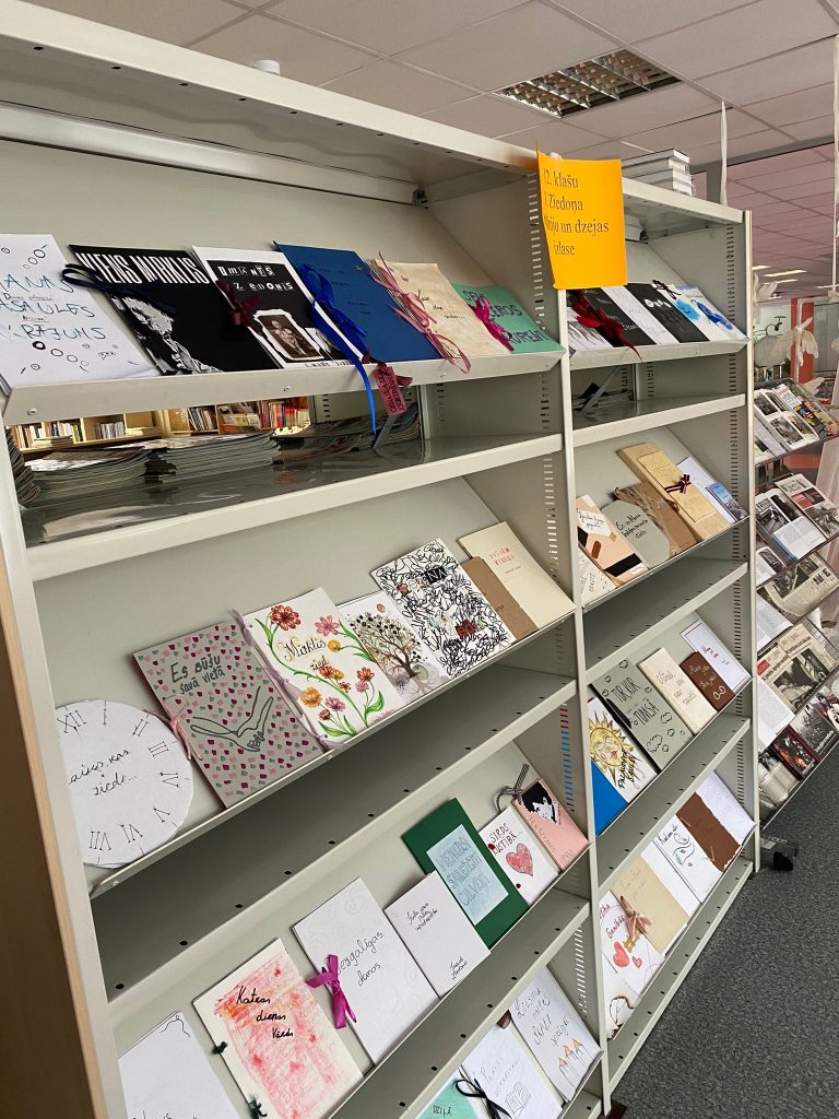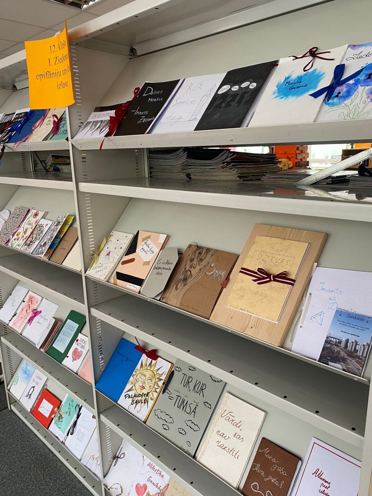 12. klašu I. Ziedoņa epifāniju un dzejas izlašu izstāde skolas bibliotēkā