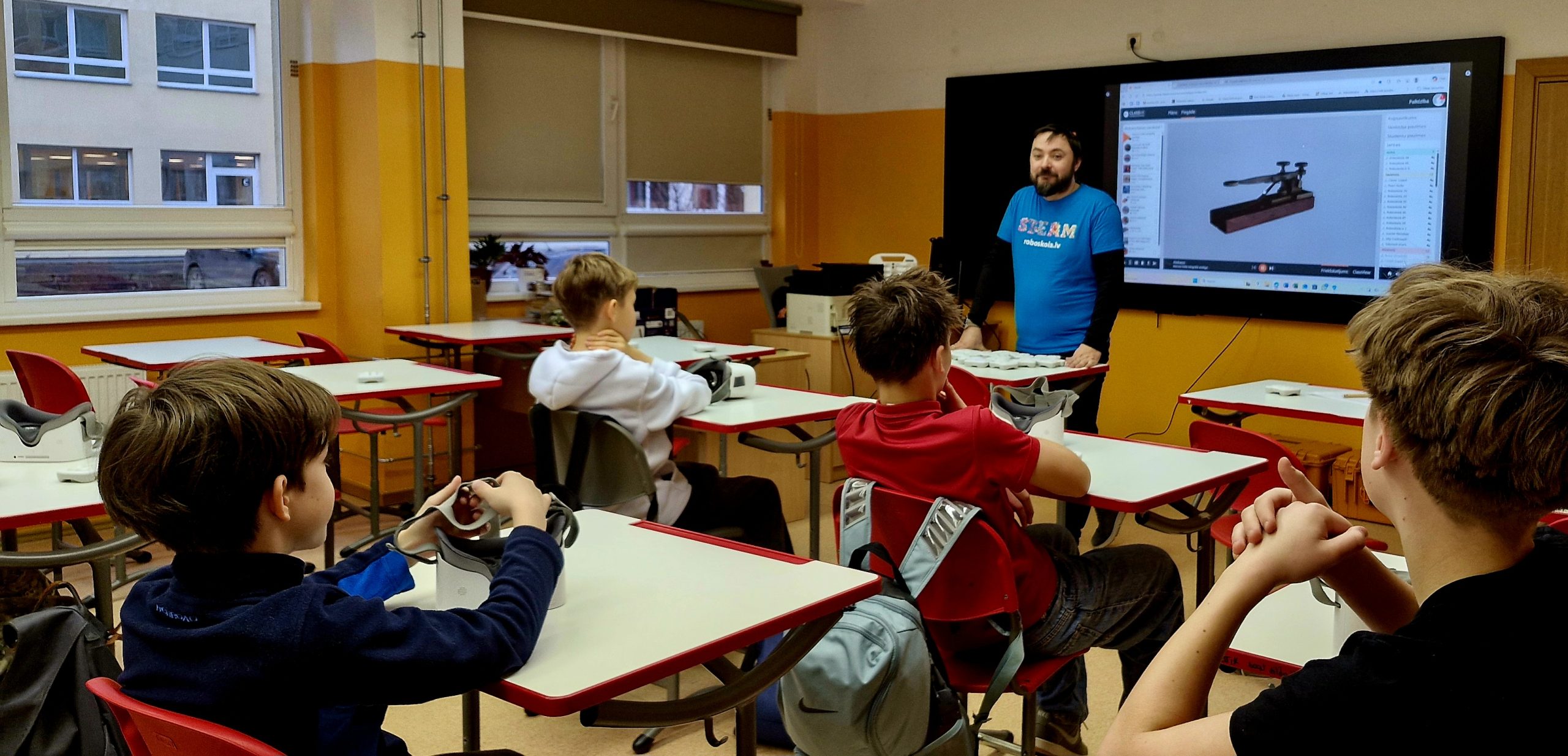 Tāpat nodarbības laikā skolēni iepazinās ar virtuālās realitātes tehnoloģijas darbības pamatprincipiem un uzzināja, ka tieši izglītība ir joma, kur šo tehnoloģiju pielieto visbiežāk. Skolēni aktīvi iesaistījās jautājumu uzdošanā, izsakot savas idejas par to, kā virtuālās realitātes tehnoloģijas varētu uzlabot mācību procesu un ikdienas dzīvi.