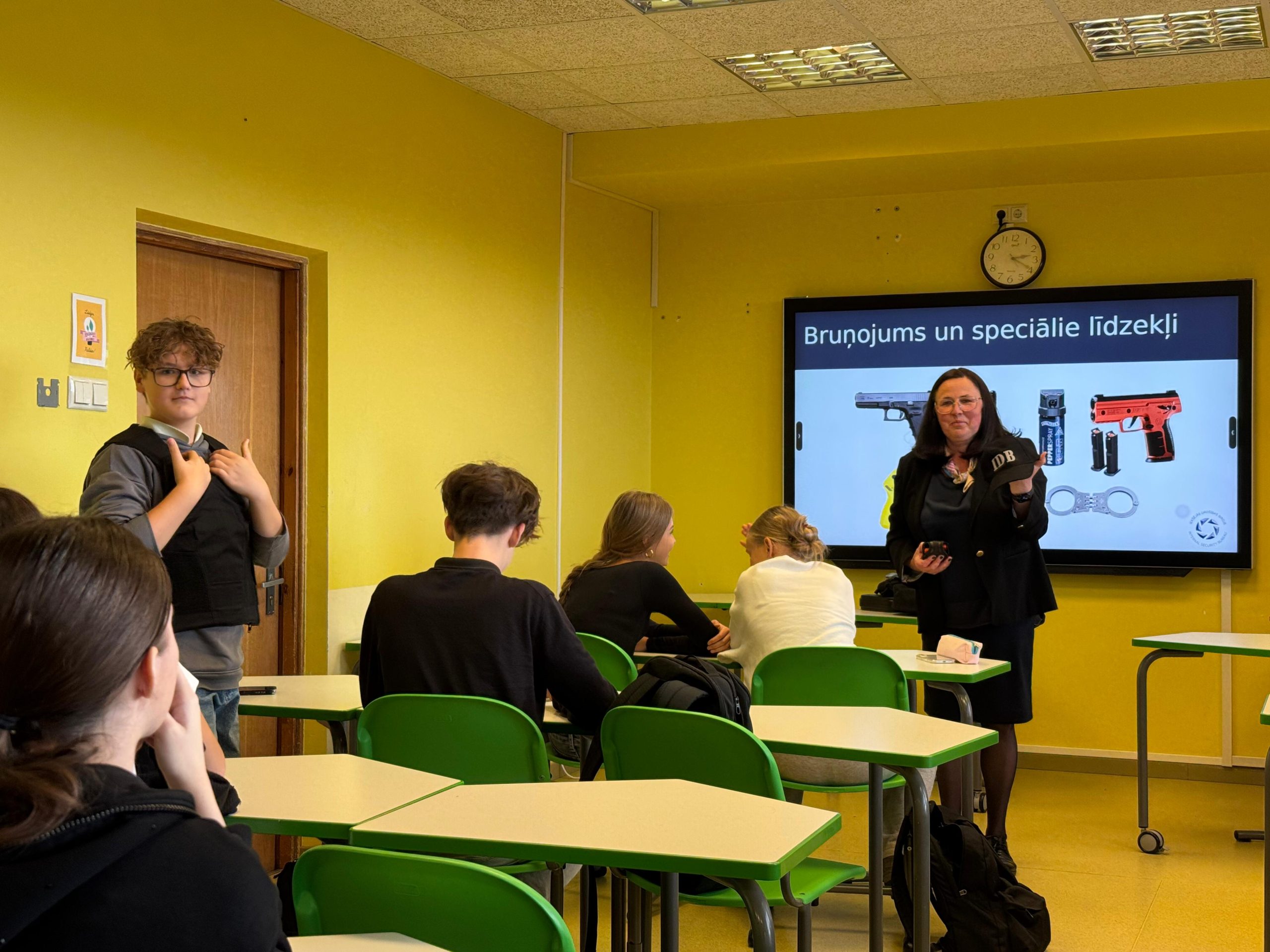 Sarunas laikā Dace akcentēja amatpersonu tiesības un pienākumus, pastāstot dažādus piemērus, un uzsvēra arī pašu skolēnu personisko atbildību par savu rīcību. Viņa aicināja jauniešus izprast prettiesiskas rīcības sekas, tostarp narkotisko vielu lietošanas un izplatīšanas riskus, par ko var iestāties gan administratīvā atbildība, gan kriminālatbildība. Īpaša uzmanība tika veltīta arī personiskajai drošībai digitālajā vidē – kā atpazīt riskantas situācijas un neļaut sevi izmantot kā “naudas mūli” jeb personu, kas iesaistīta nelikumīgos finanšu darījumos.