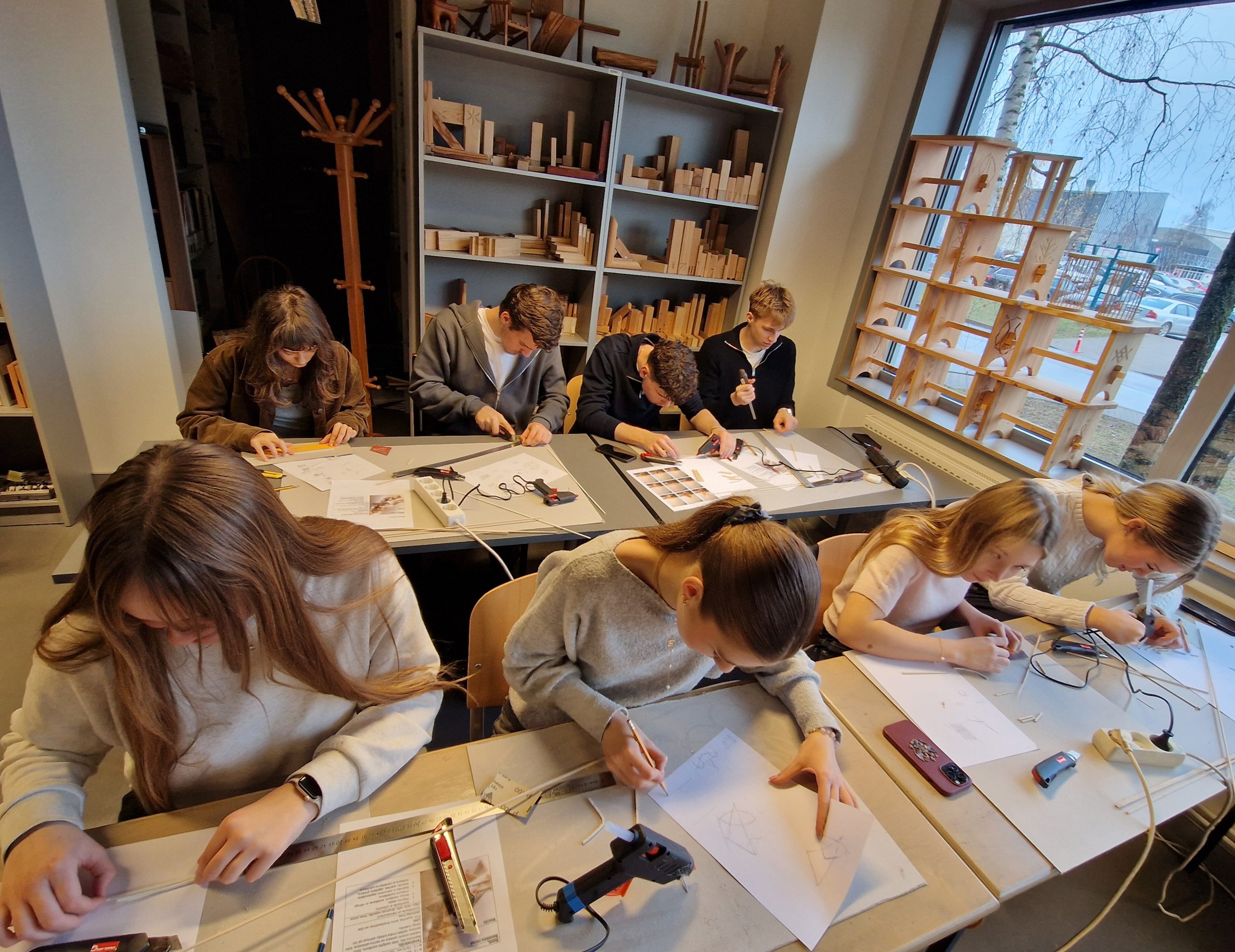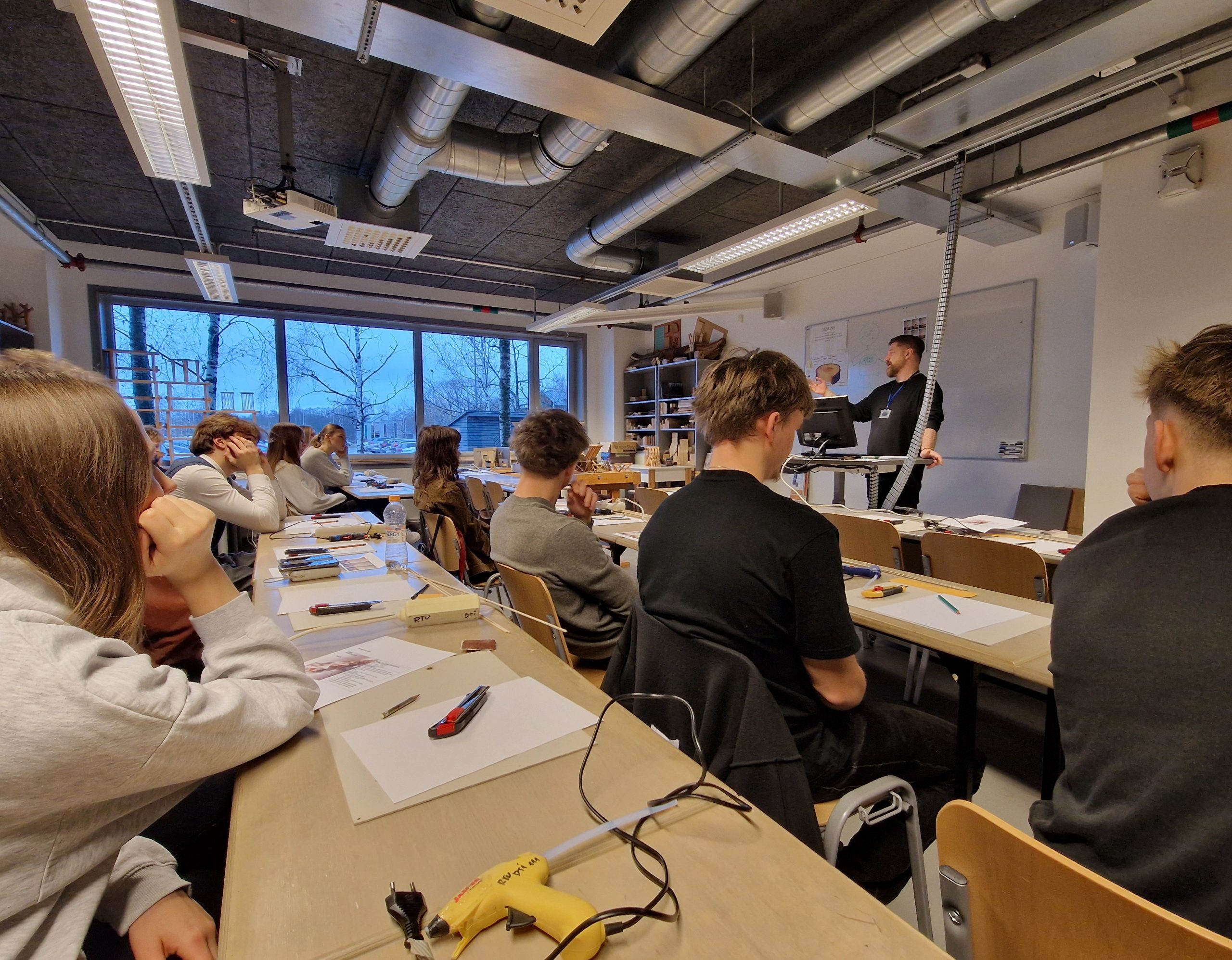 Norises ievadā izglītojamie uzzināja, kāpēc koka dizains ir nozīmīgs mūsdienās un kā tas palīdz domāt par ilgtspēju un vides aizsardzību. Norises pasniedzējs iepazīstināja ar koka kā materiāla īpašībām un dizaina pamatprincipiem – ritmu, līdzsvaru, kontrastu, simetriju un akcentu. Tika parādīts, kā matemātikas likumi noder, veidojot precīzas formas un konstrukcijas, kā arī kā dizains var atspoguļot personīgo stilu.