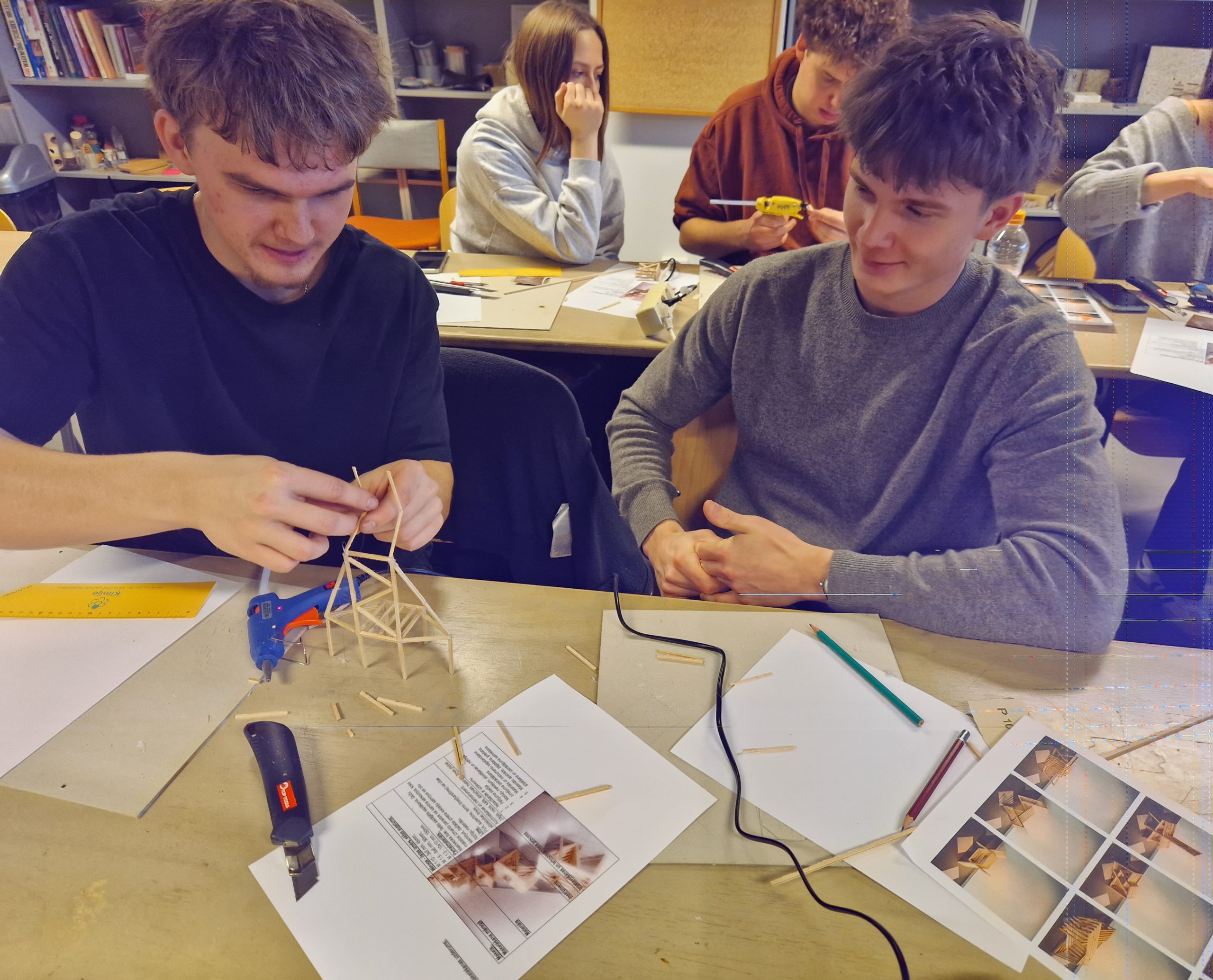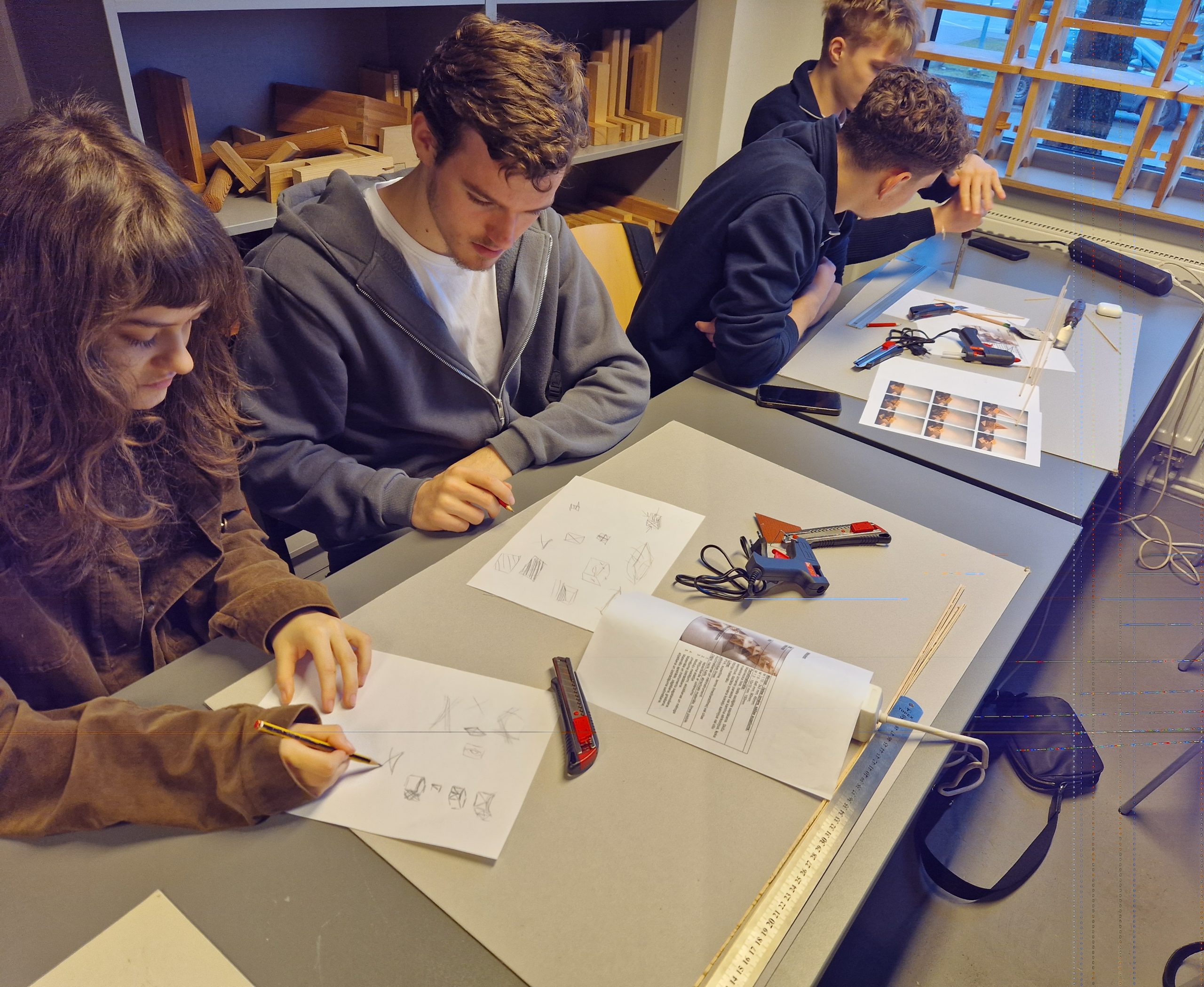 Norises praktiskajā daļā izglītojamie grupu darbā izstrādāja savu funkcionālu produktu “Sēžamais” konceptuālo modeli mērogā 1:10, izmantojot 6 x 6 mm masīvkoksnes līstītes. Izglītojamie izgatavoja precīzus savienojumus un leņķus, apgūstot konstrukcijas veidošanas pamatprincipus. Pasniedzējs palīdzēs izvērtēt idejas, sniegs padomus un iedrošinās izmēģināt dažādus risinājumus.